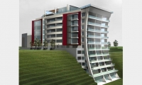 Imobilul dezvoltat pe 12 niveluri – din care 5 sub cota de acces dar cu deschidere la mare – integreaza conceptual sisteme de bioconstructie, incalzire si ventilatie cu utilizarea eficienta a resurselor naturale si un sistem complet de supraveghere, gestiune si control – cuprinde 52 apartamente cu suprafete intre 90mp si 315mp si un penthouse de 475mp cu terasa gradina si piscina, un centru de fitness cu piscina pentru rezidenti si 105 locuri de parcare subterane.