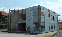 Constructia este amplasata la intersectia unor drumuri foarte intens circulate, cu functiune mixta: sediu firma (birouri) si spatii de depozitare. Avand in vedere posibilitatea perceperii volumului construit din unghiuri foarte diferite, propunerea a urmarit pe langa exprimarea diferentierii functionale si marcarea unui anumit dinamism compozitional al volumelor. Aceasta tratare plastica alaturi de finisajele exterioare propuse (pereti placati cu ALUCOBOND) sustin discursul modern al acestei prezente volumetrice. « PROIECTUL ANTERIOR PROIECTUL URMATOR »