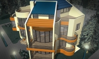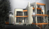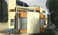 Locuinta urbana unifamiliala (demisol, parter, etaj si mansarda amplasata pe un lot de colt cu dubla orientare stradala. Particularitatile terenului deschid posibilitati marite din punct de vedere al exprimarii arhitecturale permitand un discurs in care formele cilindrice alterneaza integrandu-se armonios si modern totodata intr-o volumetrie predominant prismatica. Cilindrul aflat pe coltul imobilului adaposteste la parter livingul si la etaj dormitorul principal al casei personalizand accentuat spatiul interior al locuintei