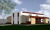 Imobilul este o cladire parter ce contine doua locuinte cuplate, avand fiecare o zona de zi si o zona de noapte. Imobilul are acces pe fatada nord-vest si este proiectat avand suprafete si organizarii functionle similare, continand fiecare dupa cum urmeaza: Windfang, debara, loc de luat masa, bucatarie deschisa, living, 2 dormitoare, deserivte de dressing si baie, accesate printr-un hol. Imaginea plastic arhitecturala propusa petru locuinta va fi aceea de doua volume prismatice paralele unite printr-o a treia prisma perpendiculara pe acestea. Structura este in cadre, cu fundatii, stalpi si grinzi de beton armat, iar sistemul de acoperire este sarpanta de lemn in doua ape, invelitoare de tigla ceramica rosie. Inchiderile sunt de zidarie de caramida. Peretii interiori, de compartimentare, sunt proiectati din zidarie de caramida si sisteme gips-carton. Proiectul se afla in constructie. Regimul de inaltime : P S TEREN=736.15mp PERON ACCES= 15.46 mp S CONSTRUIT= 217.73mp S DESFASURAT= 217.73mp S UTIL= 185.70 mp POT=30% CUT=0.30 PROIECTUL URMATOR »