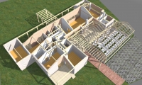 Locuinta unifamiliala de vacanta, construita in regim parter, se afla in judetul Prahova. S construit locuinta= 229.70 mp S construit sera=68.95mp S util total=353.85 mp Imobilul are acces pe fatada sud si are o delimitare clara a zonei de zi si a zonei de noapte. Structura este de lemn, cu inchideri din lambriu de lemn, pe fundatii de BA.